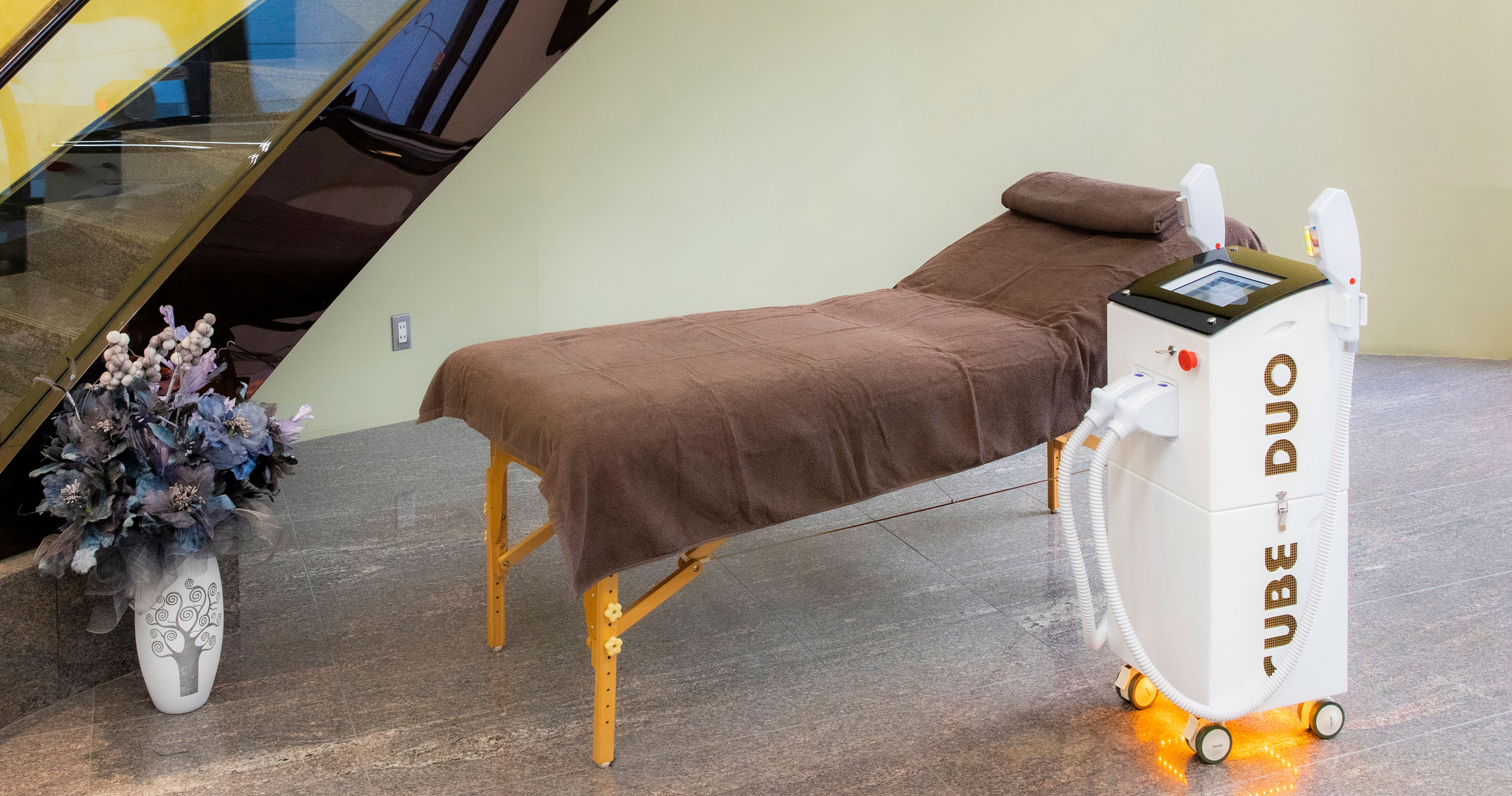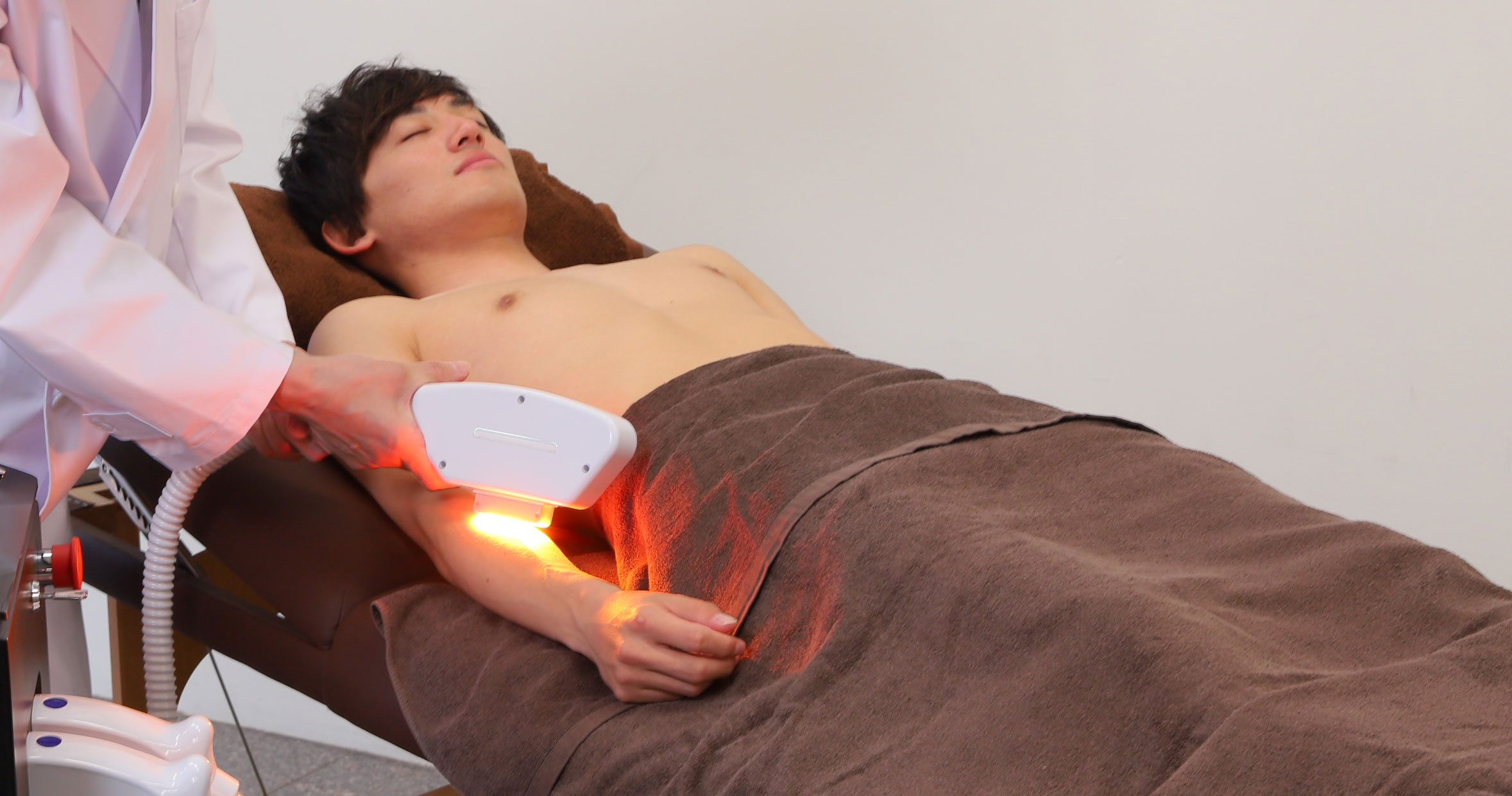 男性スタッフが脱毛機で施術を行います。脱毛後は保湿・沈静し、肌のきめを整えます。